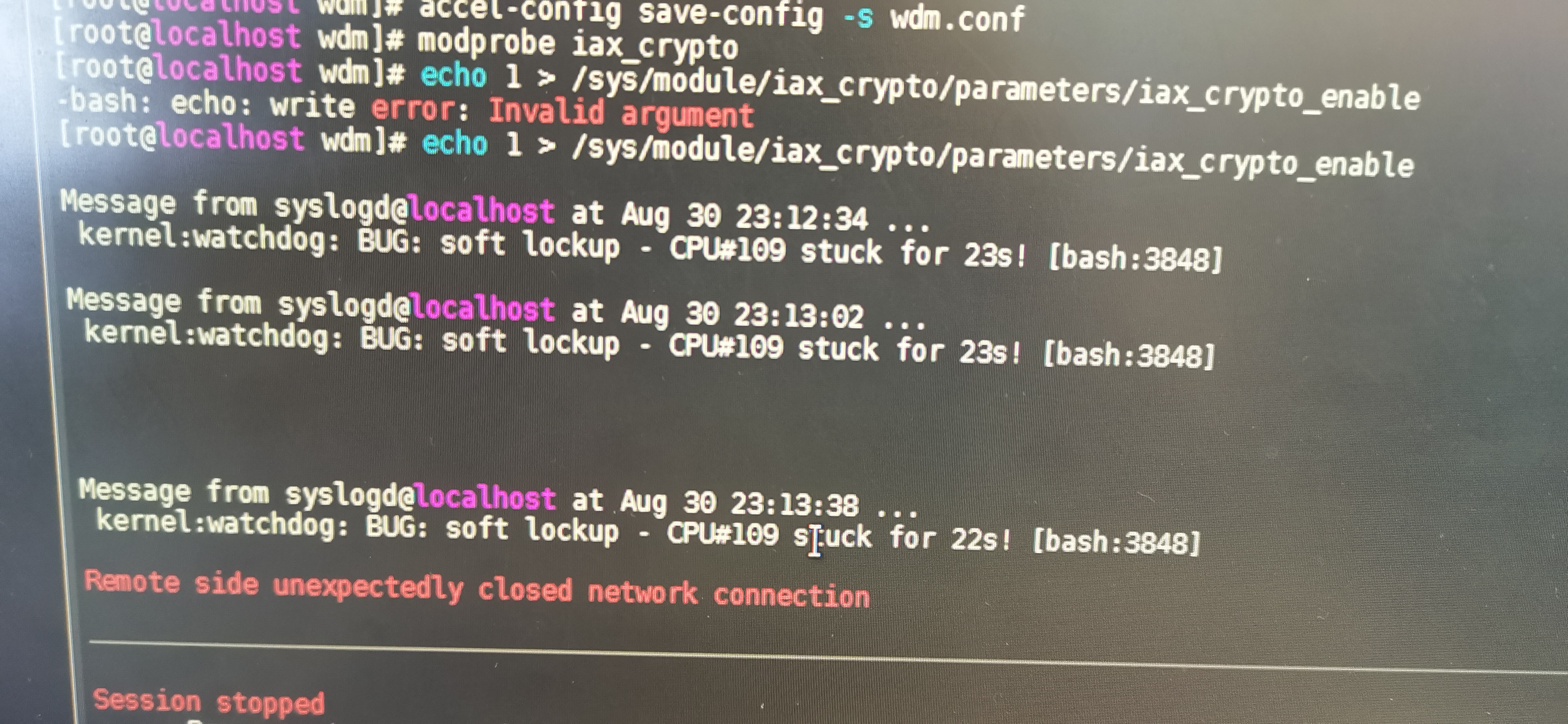 配置IAA设备后,开启iax_crypto 出现无效参数哦或者软锁问题