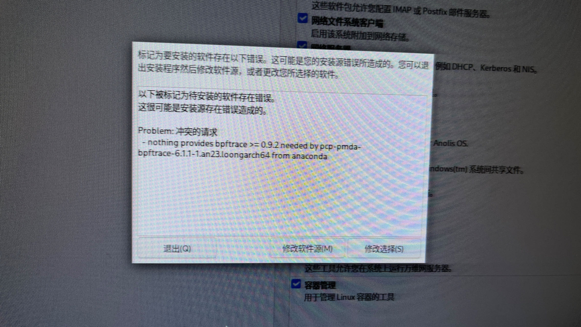 [Anolis23.1][RC1][loongarch64]在额外组件中勾选“性能工具”时,界面提示“检查软件选择出错”