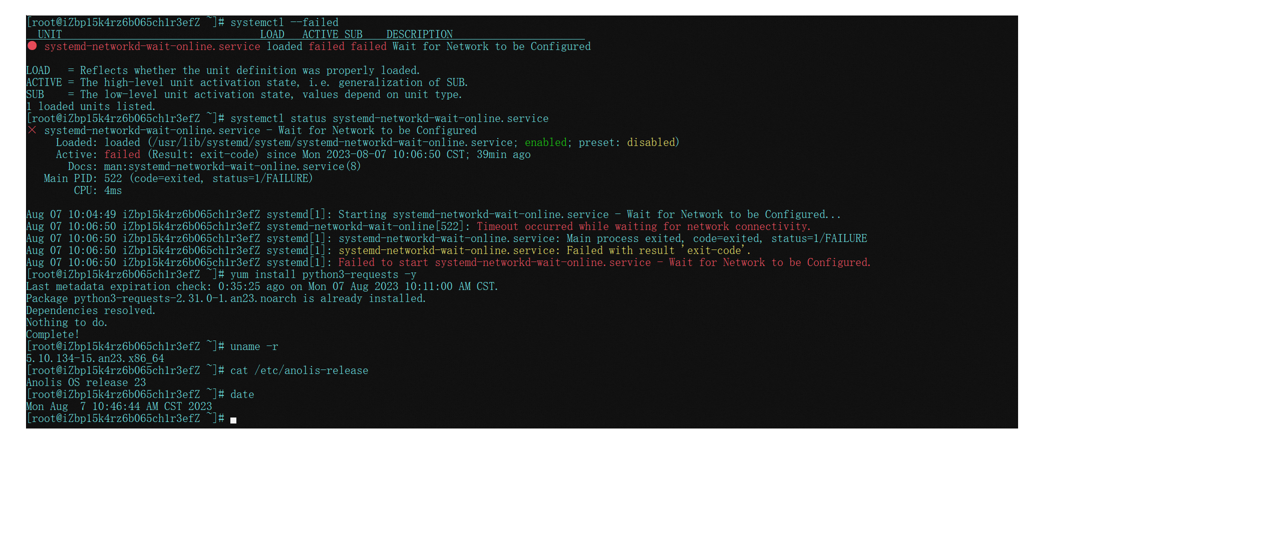 存在启动失败的服务systemd-networkd-wait-online.service