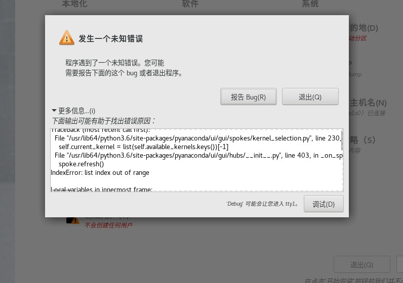 Created attachment 250 [details] 错误信息 Description of problem: 使用boot iso安装时,报错 镜像地址: https://mirrors.openanolis.cn/anolis/8.6/isos/BETA/aarch64/anolis-8.6-aarch64-boot.iso 错误信息: 见截图 简单描述, 添加上APPstream的软件源后, 点击: kernel selection
