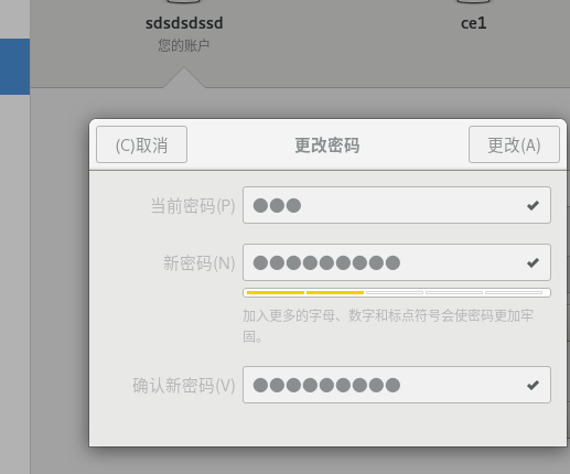 Created attachment 268 [details] 输入错误密码可点击修改按钮 环境: 1.硬件:清华同方台式机 cpu:Intel(R) Core(TM) i7-10700 CPU @ 2.90GHz 内存:16G 硬盘:256G+1T 2. 软件:anolis-8.6-x86_64-boot.iso 步骤: 1、使用U盘安装方式安装,选择ANCK(4.19内核) 2、软件选择左列选择GUI,右列全选 3、安装成功后进入系统,点击设置-详细信息-用户,点击密码修改用户密码 4、当前密码输入错误密码,输入符合要求的新密码 实际结果: 输入完成后可以点击修改按钮提交,点击后提交按钮置灰,页面无其他变化,点击其他地方后可退出当前页面 期望结果: 提示更改密码失败,当前用户密码错误。 报错信息见图片附件。
