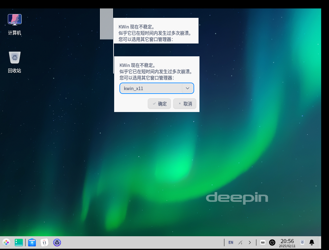 Created attachment 1294 [details] 桌面崩溃 iso: https://build.openanolis.cn/kojifiles/output/anolis-8-20250115.3/compose/BaseOS/loongarch64/iso/anolis-8-loongarch64-dvd1-20250115.3.iso 虚拟机安装 复现方法: 1 默认安装,419内核,组件选择DDE桌面,右侧勾选 Deepin New Desktop Environment。 2 安装完成后重启系统 结果: DDE桌面崩溃