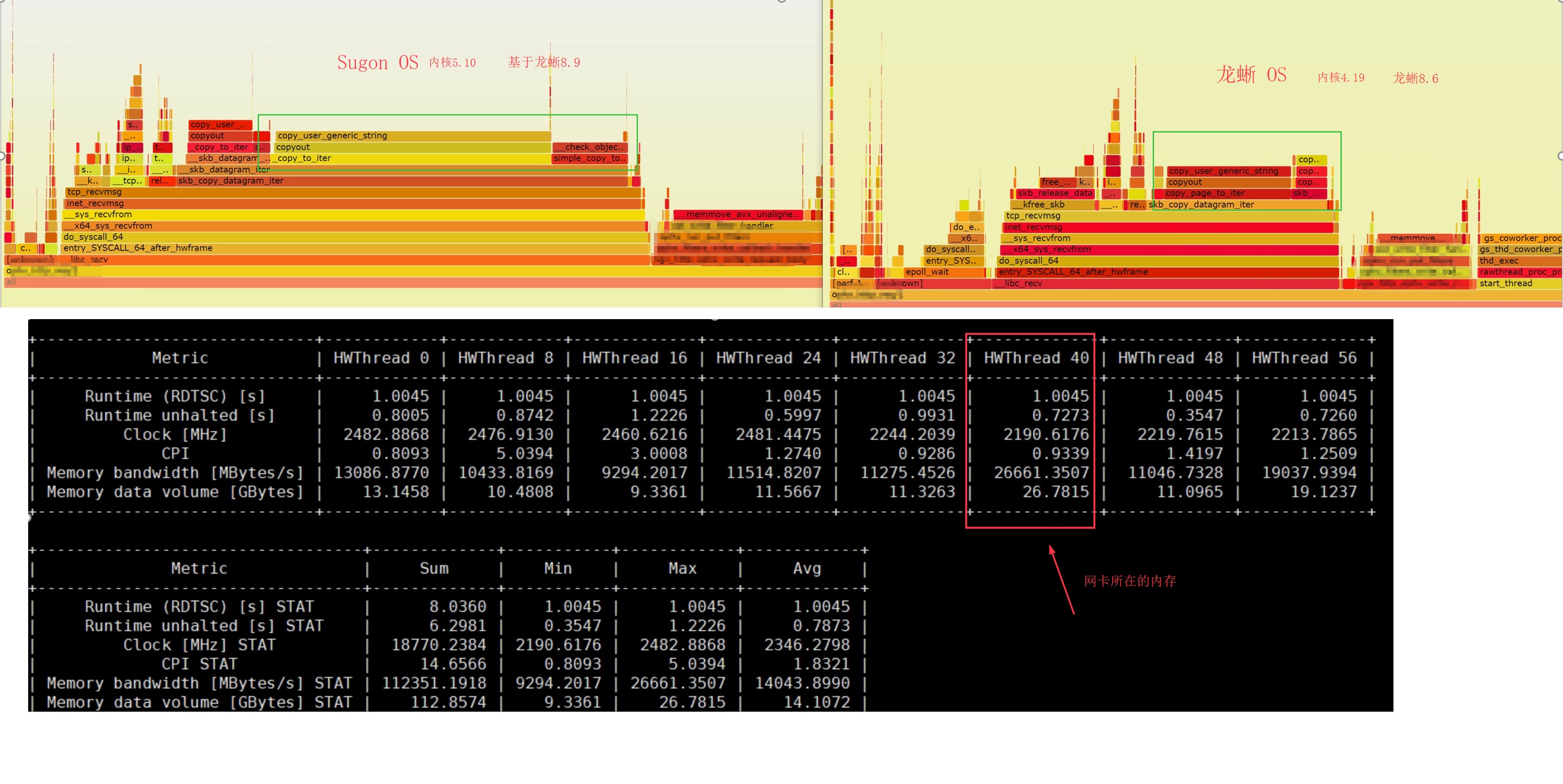 Created attachment 1349 [details] perf record & mem use Description of problem: Environment information: CPU: Hygon 7360 * 2 Mem: 16G * 8 Network adapter:MLX IB 200GE (driver version 24.10-1.1.4) Compared to the 4.19 kernel version under the same use case, the memory bandwidth on the NUMA node where the network interface card resides is nearly saturated by the operating system during data reception(by TCP protocol). In the 4.19 kernel version, both memory bandwidth and CPU utilization are reduced by 30%. Captured via perf, the time slice consumed by the function “copy_user_generic_string” increased by 30% in the 5.10 kernel. Version-Release number of selected component (if applicable): Sugon os kernel:5.10.134-17.1.3 (base on Anolis 8.9, and has picked this issue:https://gitee.com/anolis/cloud-kernel/pulls/3496) How reproducible: Steps to Reproduce: 1、When sending TCP requests of 4MB in size from multiple clients to a server with a Hygon CPU (3rd generation), if the server memory of the NUMA node where the network interface card (NIC) resides is 16GB, the network bandwidth of a single server must be driven to 2.5 GB/s . 2、Under the same operation and environment, compared to the 4.19 kernel. 3、Monitor the memory bandwidth and CPU utilization on the NUMA node where the network interface card resides. Actual results: In the 4.19 kernel version, both memory bandwidth and CPU utilization are reduced by 30%. Expected results: The memory bandwidth and CPU utilization of the 4.19 kernel are on par with those of the 5.10 kernel. Additional info: