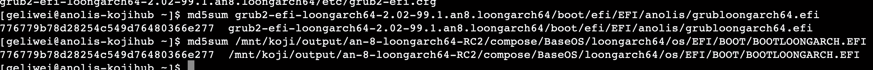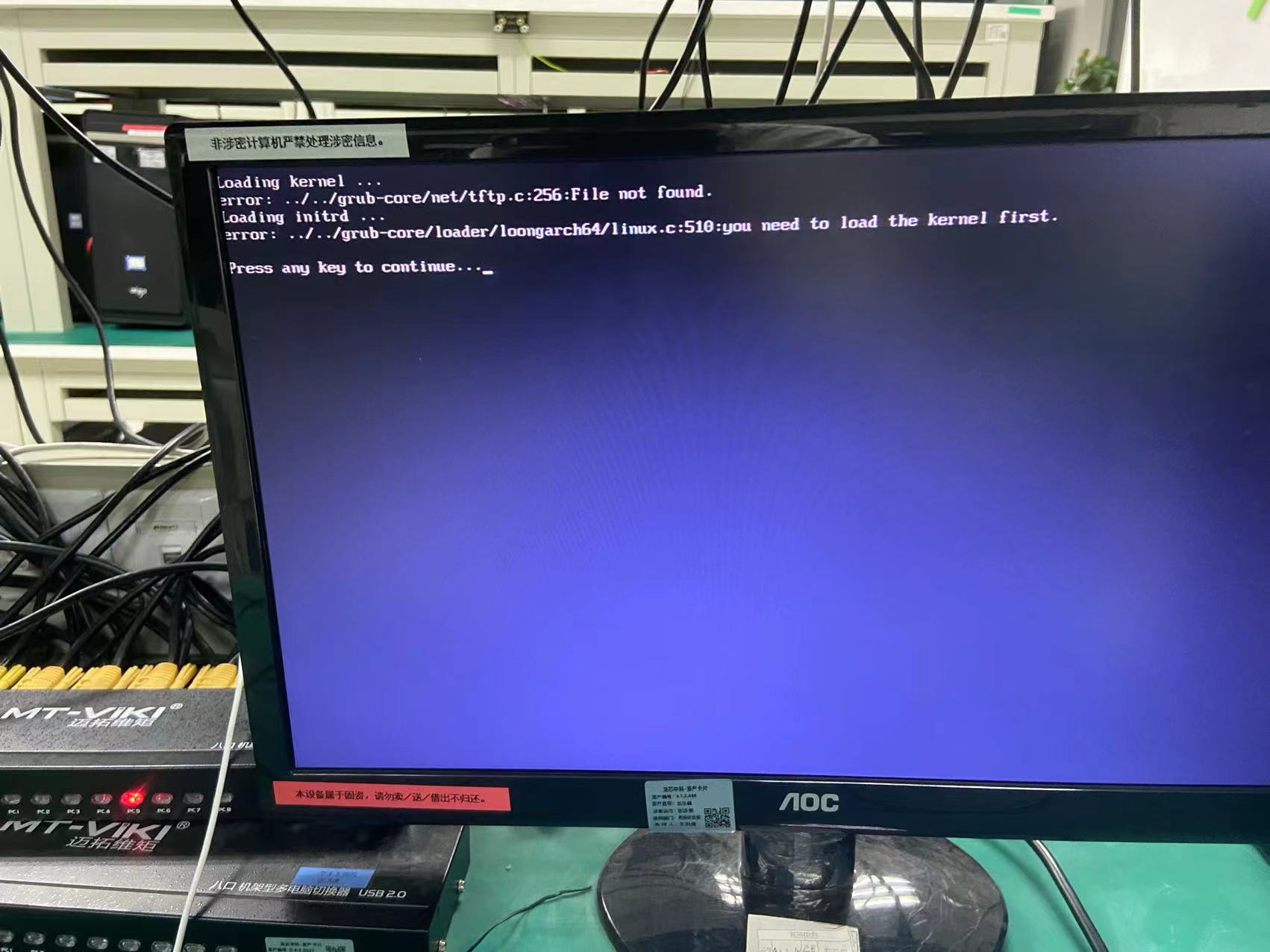 Created attachment 56 [details] pxe Description of problem: pxe安装,无法进去启动界面,更换loongnix的efi文件后能进入到启动界面,但需要手动安装 Version-Release number of selected component (if applicable): 【设备信息】 1)CPU类型/主频 处理器:Loongson-3A5000 CPU MHz: 2300.00 2)主板型号:LLoongson-LS3A5000-7A1000-1w-V0.1-CRB 3)固件型号:ML5A-V3.3 04/29/2021 4)内存信息:16G 5)显卡:R7240 6).系统版本:anolis-8-loongarch64-dvd1-20211210.1.iso 7).内核版本 :Linux localhost.localdomain 4.19.190-3.an8.loongarch64 #1 SMP Tue Dec 7 17:19:44 UTC 2021 loongarch64 loongarch64 loongarch64 GNU/Linux How reproducible: Steps to Reproduce: 1.配置pxe服务器 2.修改机器的启动项为网络启动 注:具体可参考http://manual.loongnix.cn/loongnix/lns-83/loongarch64/Installation_Guide/03.%E5%AE%89%E8%A3%85%E6%96%B9%E5%BC%8F.html 网络安装 Actual results: pxe安装,无法进去启动界面 Expected results: 可以进行pxe安装 Additional info: