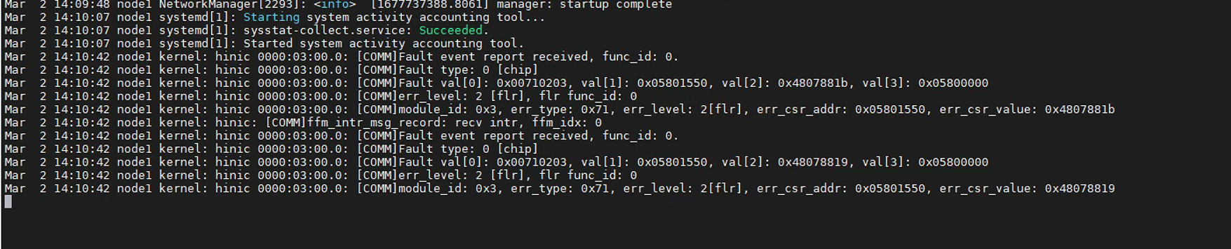 Created attachment 679 [details] 驱动报错信息 服务器中存在华为网卡部件SP570 ,其对应的内核驱动为hinic,内核安装完成后,网卡正常启动,同时节点间的通讯正常ping, 当一个节点往另外一个几点传输大文件时(30G),网络卡死,只能重启系统恢复。系统卡死时日志如附件,同时验证欧拉内核无该问题。