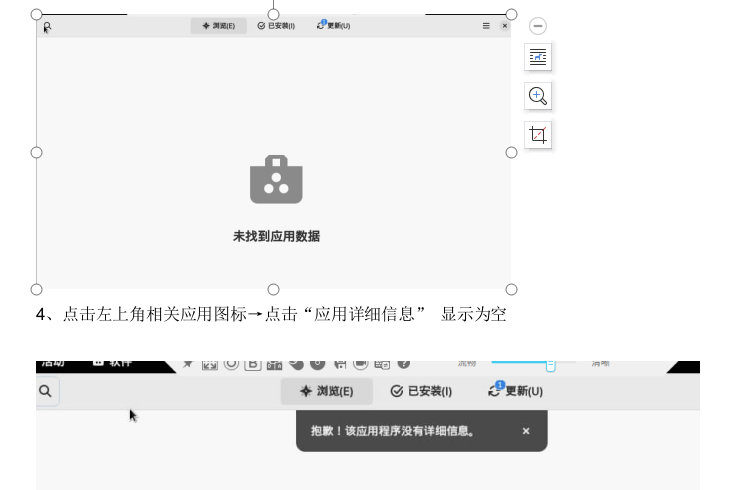 Created attachment 762 [details] 图片 【环境信息】: 镜像下载地址: https://build.openanolis.cn/kojifiles/output/anolis-23-20230606.1/compose/BaseOS/aarch64/iso/anolis-23-aarch64-dvd1-20230606.1.iso https://build.openanolis.cn/kojifiles/output/anolis-23-20230606.1/compose/BaseOS/x86_64/iso/anolis-23-x86_64-dvd1-20230606.1.iso 【测试步骤】 1、选择带gui服务器安装 2、安装完成后进入系统,打开软件 【测试结果】 软件里无可下载软件 且系统自带软件卸载后也无法在软件里搜到 点击“应用详细信息” 跳转到软件里显示为空 【预期结果】 软件可以正常使用