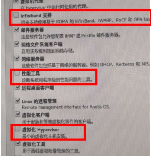Created attachment 3 [details] 系统环境额外软件部分缺少依赖包 系统镜像安装过程中如果,选择添加部分额外包,会报错,如下: 系统环境额外软件部分缺少依赖包 目前发现的是下面三项: Infiniband 支持 性能工具 虚拟化 Hypervisor