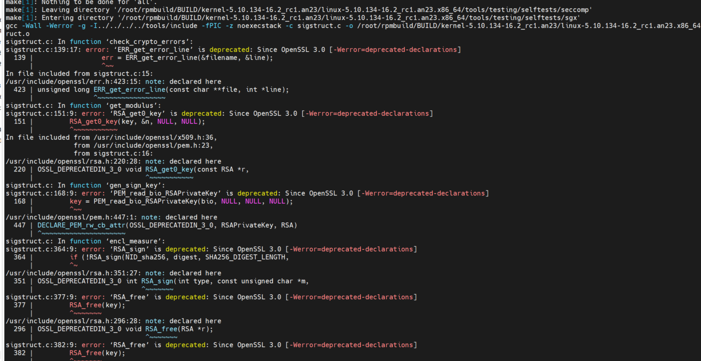 Description of problem: 1)安装 AnolisOS 23.1 RC1 以及对应的内核源码包; 2)编译 Kselftest 识别,报错信息见附件。 Version-Release number of selected component (if applicable): How reproducible: Steps to Reproduce: 1. 2. 3. Actual results: Expected results: Additional info: