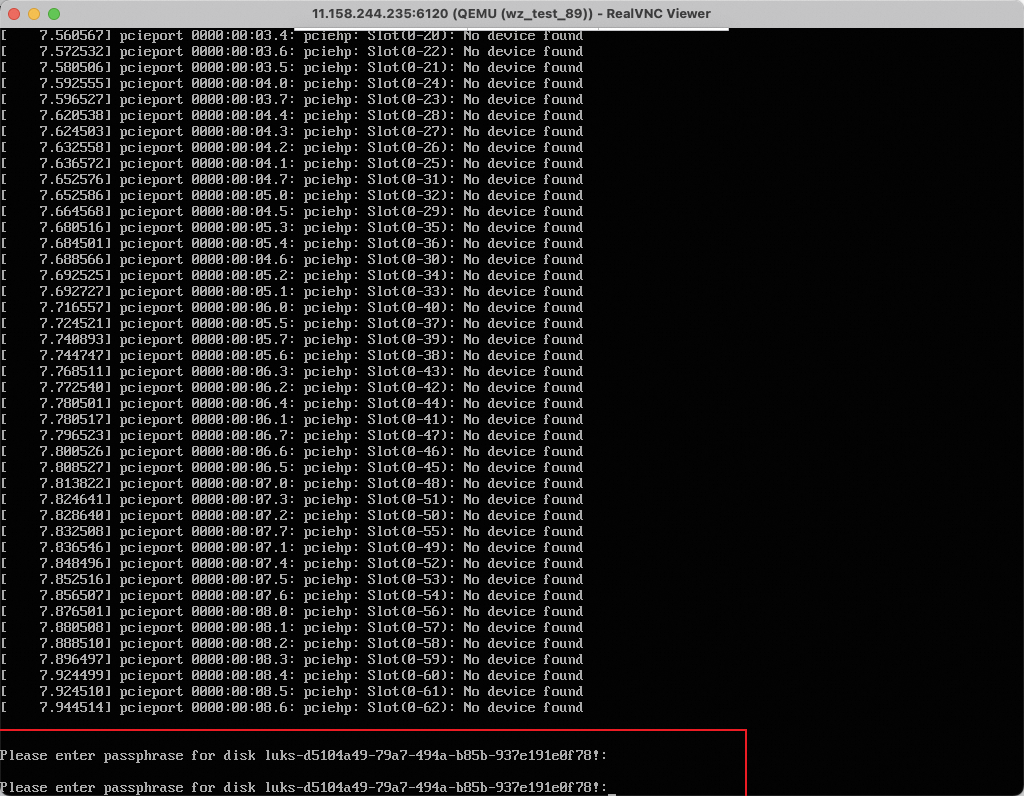 Created attachment 1023 [details] 安装后重启无法进入系统 Description of problem: 云谷机房物理机安装测试,arm架构选择硬盘加密安装,无法正常弹出硬盘密码输入界面,导致无法进入系统 Version-Release number of selected component (if applicable): How reproducible: 测试环境: Arm架构物理机 安装方式: pxe或U盘 Steps to Reproduce: 1.进入安装界面 2.硬盘界面,勾选硬盘加密 3.尝试安装 Actual results: 报错如附件 Expected results: 正常安装 Additional info: