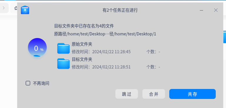 Created attachment 1052 [details] 弹窗提示 镜像: anolis-8-loongarch64-dvd1-20240202.0.iso 现象: 复制文件的过程中 勾选不再询问 ,后续同样的操作还会弹窗提示