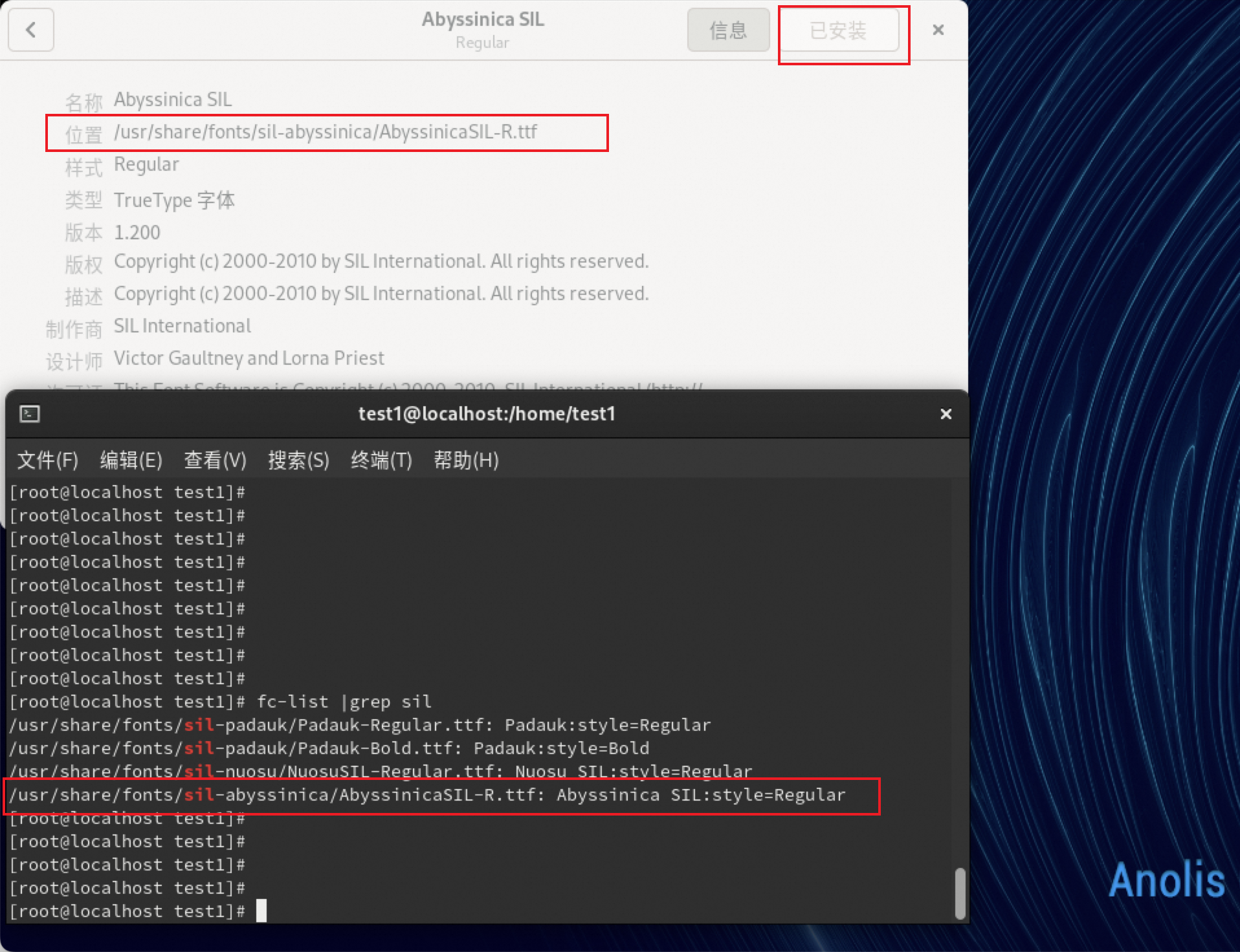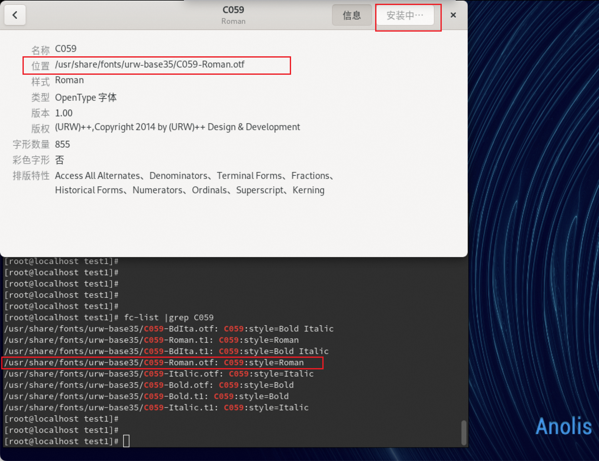 个别字体安装后仍然显示为可安装而非已安装,如上截图所示,fc-cache 刷新后通过 fc-list 查看已安装字体列表,表明字体实际已经完成安装,此状态显示问题对实际字体使用不造成影响,此问题影响面有限,降低优先级处理